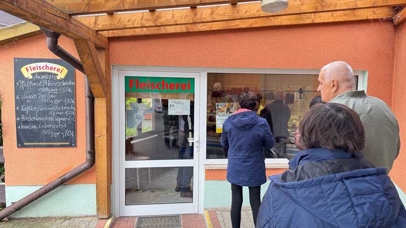 | 18.10..25 | ![]() Mein Blick auf den Dorfteich um 7.02 Uhr… ![]() …um 7.12 Uhr kommt der Schulbus. Danach haben die Schüler in Brandenburg Herbstferien bis zum 1. November, und die Uhrzeit wird am 26. 10. zurückgesrellt. ![]() Nach dem Frühstück fahre ich zum Einkaufen. Bei den Abfalltonnen werfe ich leere Flaschen und Gläser ein. Früher waren das vor allem meine zahlreichen Weinflaschen. Wenn ich wieder Wein trinken würde, würde ich auch schnell wieder an Gewicht zulegen. ![]() Im Kartoffellager kaufe ich Äpfel und frische Eier. ![]() Auf der linken Straßenseie um 10.19 Uhr liegt die Dahmer Grundschule, wo die Kinder heute ihren letzten Schultag haben. ![]() Beim Matzger, der in Dahme nur an drei Tagen geöffnet ist, steht eine lange Schlange. Ich hole mein vorbestelltes Roastbeef ab. ![]() Nach dem Mittagessen fahren Micaëla und ich um 15.40 Uhr zusammen Fahrrad. Micaëla sagt, dass sie bei dem Gegenwind sehr viel Mühe hatte, hinter mir her zu kommen. Ich will mich nicht zu sehr anstrengen und fahre brav zurück, um zuhause meinen Abendjoint zu rauchen. ![]() Um an das Ende der Mediathek auf dem iPhone zu kommen, mache ich dieses Selfie. Ich sitze schon vor dem Fernseher, als Micaëla vom Radfahren zurück kommt. Sie erzählt mir von ihren Abenteuern mit Sonja, das Pferd das bei uns am Anfang Odysseus nannten. Wir sehehen zusammen diesen Berliner Tatort… …und danach Sven Plöger, der von den Sonnenstunden heute und morgen spricht. |