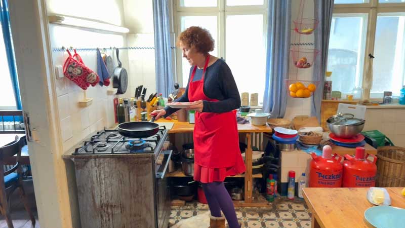 | 13.10..25 | ![]() Da es im Laufe des grauen Tages noch regnen soll, bringe ich die Schubkarre mit dem zusammengerechten Walnusslaub in die Scheune. ![]() Um 11 Uhr stehen meine beiden gelben Säcke vor der Tür. Ich bin wie immer der erste im Dorf. ![]() Um 11.25 Uhr gehen Micaële und ich zusammen Fahrrad fahren. ![]() Ich entdecke eine Mohnblume. ![]() Micaëla fotografiert sie. ![]() ![]() ![]() Nach dem Fahrradfahren mache ich den Salat für unser Mittagessen. ![]() Am späten Nachmiitag frage ich Micaëla, ob sie mit mir Tatort schauen will. Sie will nicht, sondern noch einmal Fahrrad fahren. Vorher aber noch ein Foto von mir mit dem roten Leinenhemd im grünen Zimmer machen. ![]() Ich sehe diesen alten Tatort von 2008, in dem Alice Dwyer eine Nebenrolle spielt. Bei mir spielt sie 2011 bei "INS BLAUE" die Hauptrolle. Im übrigen haben Jochen Brunow und ich irgendwann in den Neunzigern ein Drehbuch mit dem Titel "AUF DER SONNENSEITE" geschrieben. worum es ging weiß ich nicht mehr. Claudia Kleinert… …macht gemischte Vorraussagen zur Wetterentwicklung. Am Nachmittag könnte die Sonne scheinen. | |