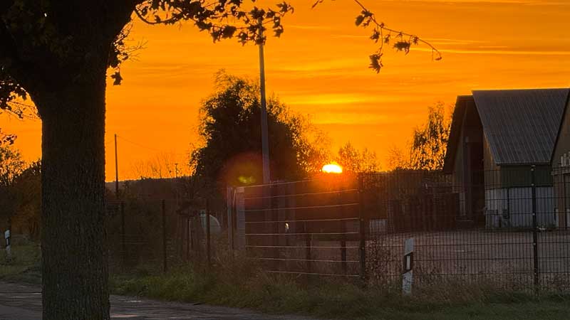 | 14.10..25 | ![]() Niendorf im Nebel. Um 7.17 Uhr fährt der Schulbus vorbei. ![]() 8.05 Uhr. Ich träume vom Radfahren zum Sonnenaufgang im Nebel. ![]() Nach dem Frühstück beginnt Micaëla mit dem Kochen einer Hühnersuppe, die ein amerikanidcher Freund "cure or kill" getauft hat. ![]() Ich fahre um 11 Uhr nach Dahme zum Einkaufen und sehe auf dem Weg zum Kartoffellager, dass der vierte und letzte Silageberg aufgemacht worden ist. ![]() Auf dem EWE-Parkplatz ![]() Vor und während dem Mittagessen sehen Micaëla und ich am Computer die Reden von Netanyahu und Trump in Israel. Danachn fahren Micaëla und ich um 14.51 Uhr mit unseren Rädern zum Kartoffellager. Sie sagt, dass sie Mühe hat, mit ihrem Rad hinter mir herzukommen. Ab 16 Uhr sehe ich mit meinem Abendjoint den neuen Tatort vom Sonntag. ![]() Um 17.53 Uhr sind Micaëla und ich zum Sonnenuntergang im Garten. Danach sehe ich mit ihr den selben Tatort ein zweites Mal. Ohne Einzuschlafen. Nachdem Claudia Kleinert vorausgesag hat, dass die kommende Nacht kalt wird, sehe ich eine Chance, dass Micaëla und ich auch wieder den Mond sehen können. | |