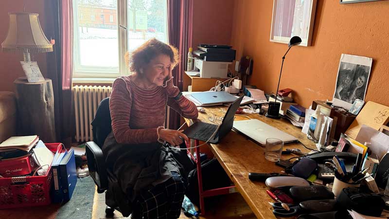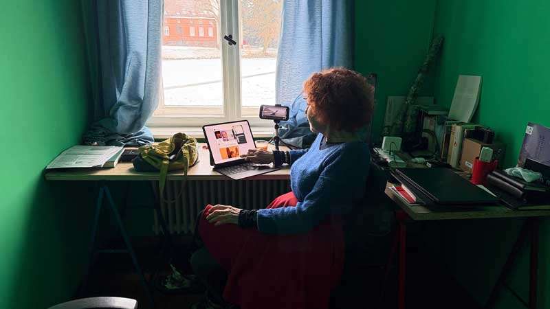 Nach dem Frühstück habe ich Micaëla eine längere Email eines Verehrers meiner Filme zu lesen gegeben. Sie liest sie in englischer Übersetzung auf ihrem iPad.