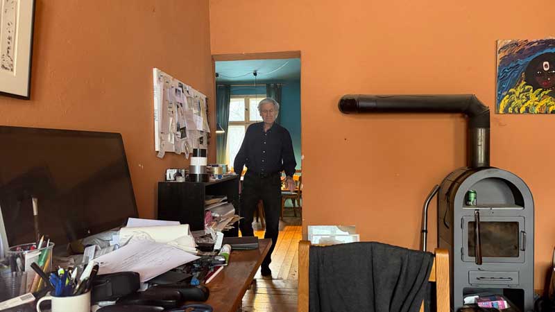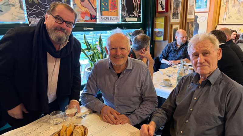Um 12.29 Uhr ist Andreas Vogel da. Ich hole Micaëla, damit sie ihn auch begrüßen kann. Sie hatte ihn bei der Feier meines 80. Geburtstags im Filmmuseum in Potsdam schon einmal kennengelernt. Ich informiere ihn über meine Pläne zu meinem neuen Filmprojejkt "IM SCHATTEN DES MONDES", und er stellt mir ein neues Vertriebskonzept für die Auswertung meiner Filme vor.