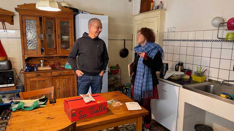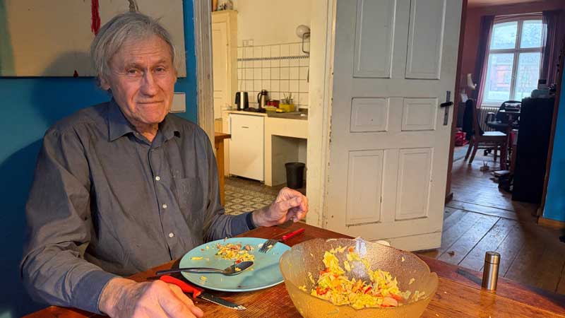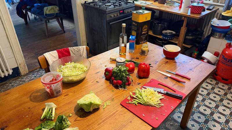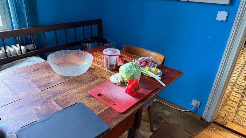 Gegen 10 Uhr ruft mich Andreas Vogel an und sagt, dass er doch kommt und gegen 12 Uhr da sein wird. Micaëla hat sich im Wohnzimmer darauf vorbereitet, den Salat für unser Mittagessen zu machen. In der Küche ist es ihr zu kalt.