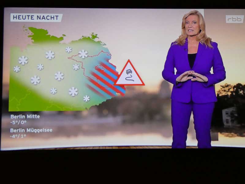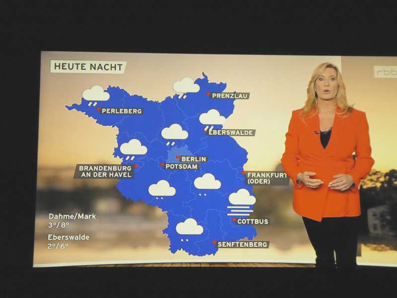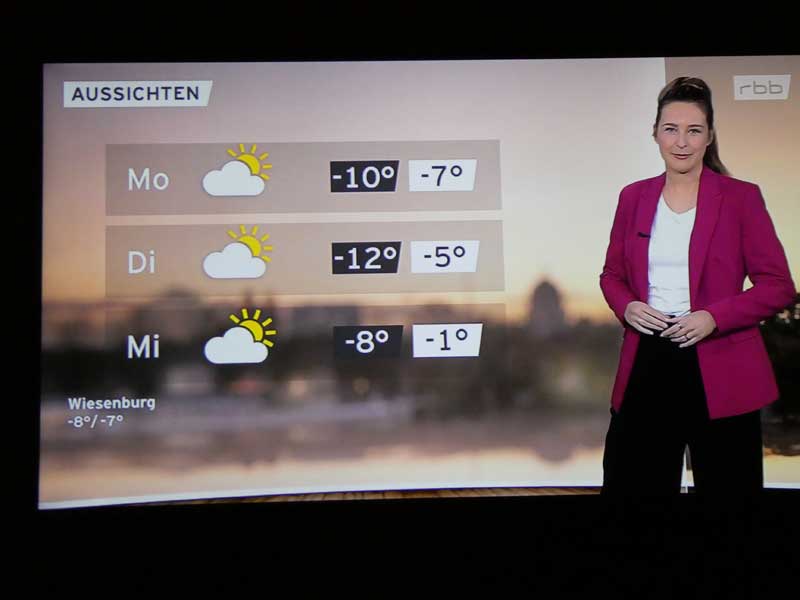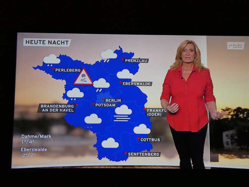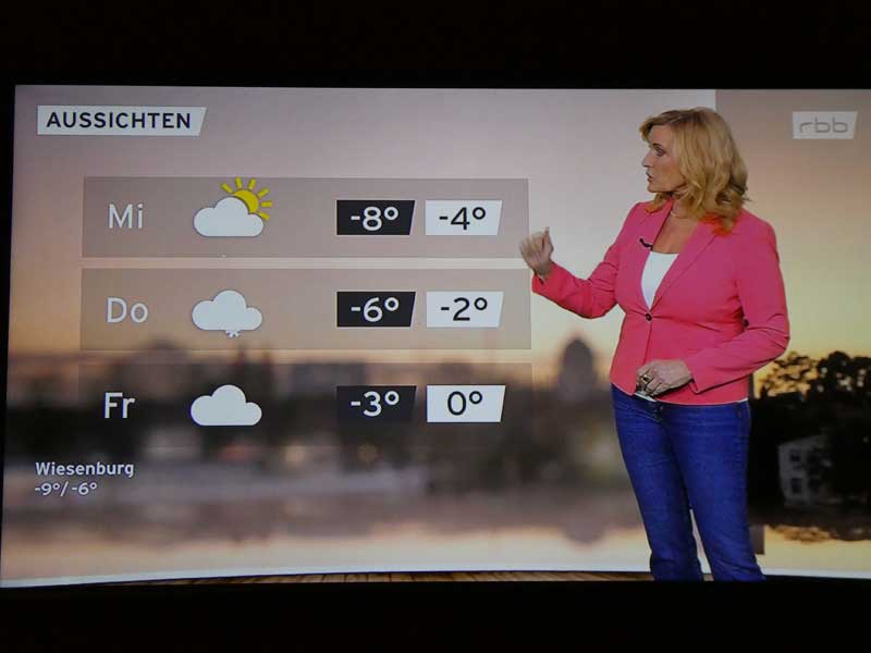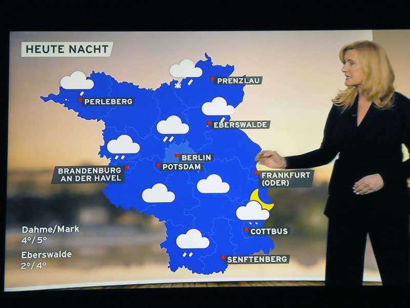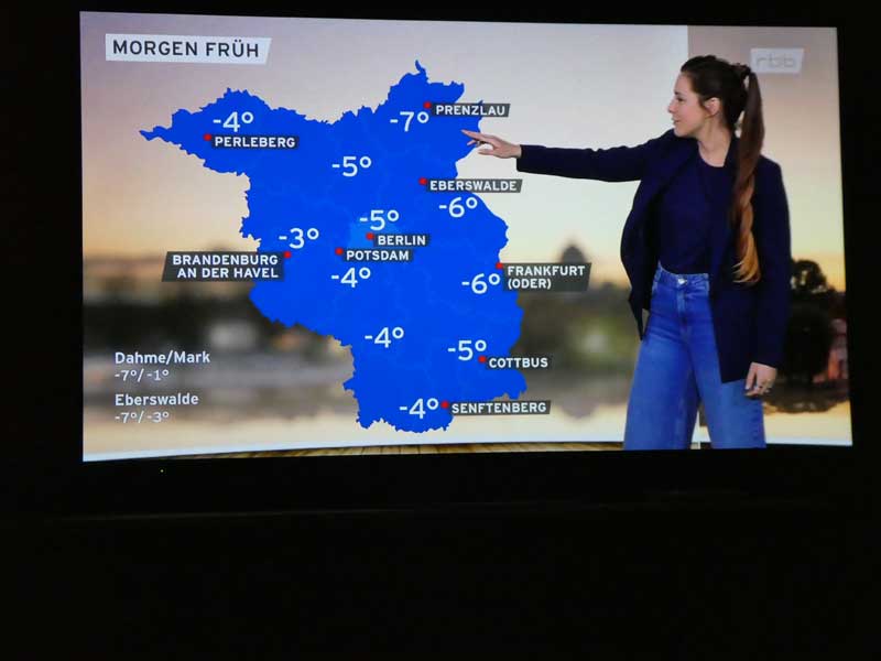 …und danach Claudia Kleinert zum Wetter in Brandenburg. Ein bisschen was sehen wur auch von der Eröffnung der Berlinale auf rbb und 3SAT.