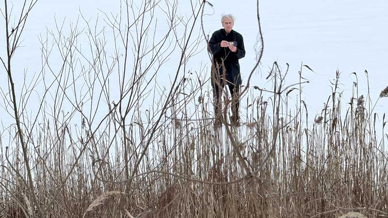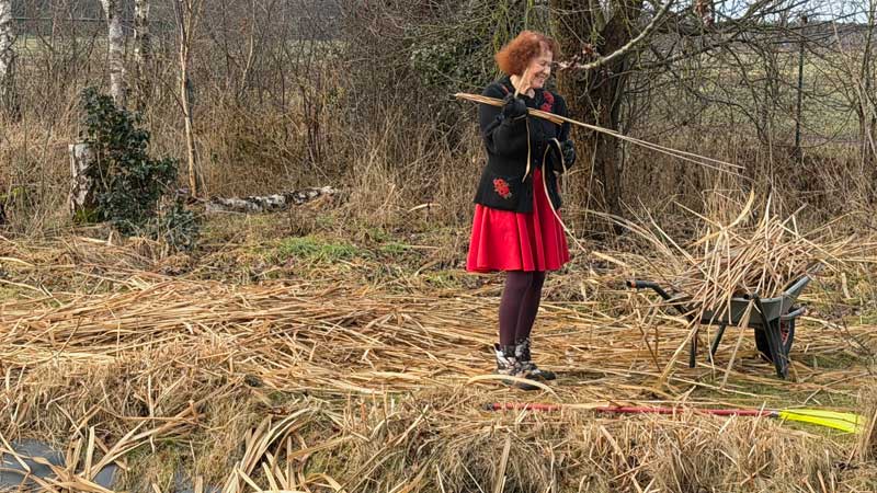 Um 11.45 Uhr filmt mich Micaëla beim Schneiden des restlichen Schilfs, das wir schon dreimal verschoben hatten…