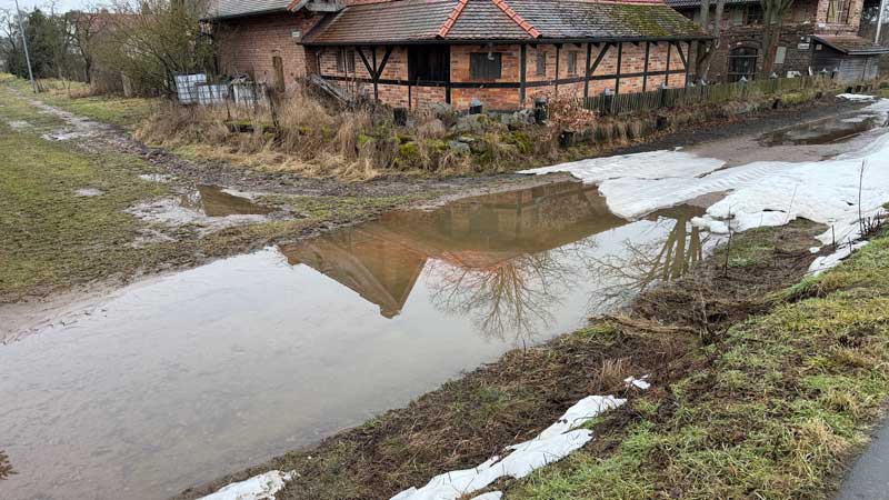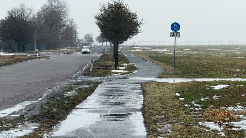 Auf den Feldern neben dem Radweg haben sich Seen gebildet.
