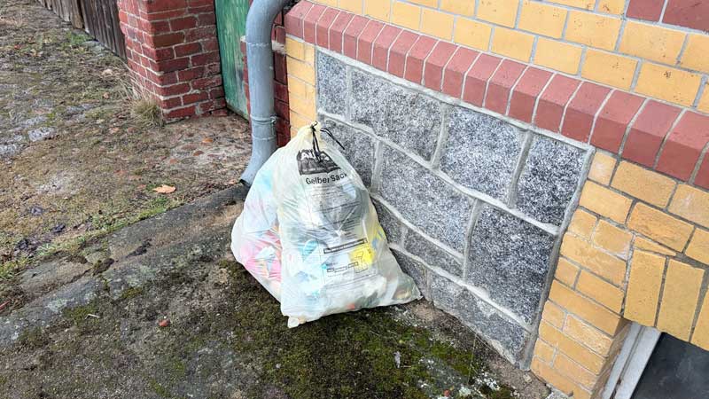 Nach dem Mittagessen stelle ich meine beiden gelben Säcke vor die Türe.