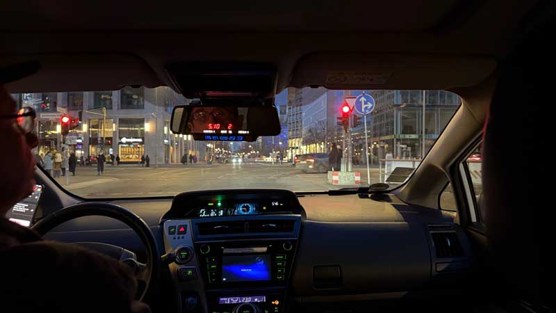 Bei der Heimfahrt im Taxi.