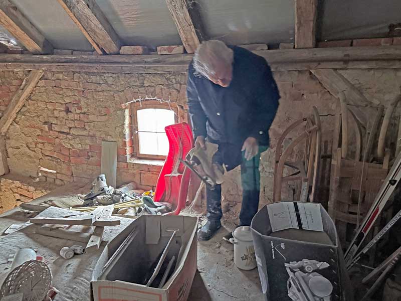 Als wir wieder zuhause sind, such ich im Speicher über dem Kuhstall nach meinen Schlittschuhen. Ich finde ein Paar mit Größe 46, mit denen ich vor vielleicht 20 Jahren auf dem Dorfteich gefahren bin, aber die passen mir jetzt nicht mehr.