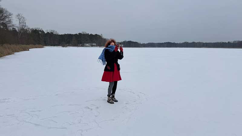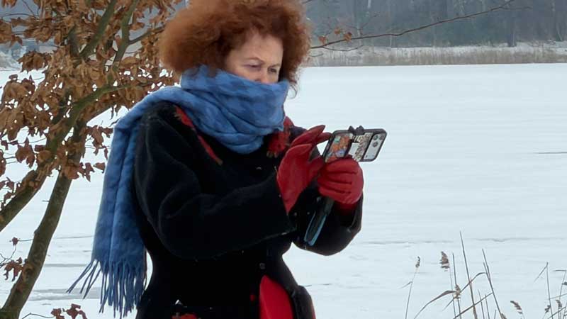 Ich fotografiere sie. Draußen schneit es noch immer.