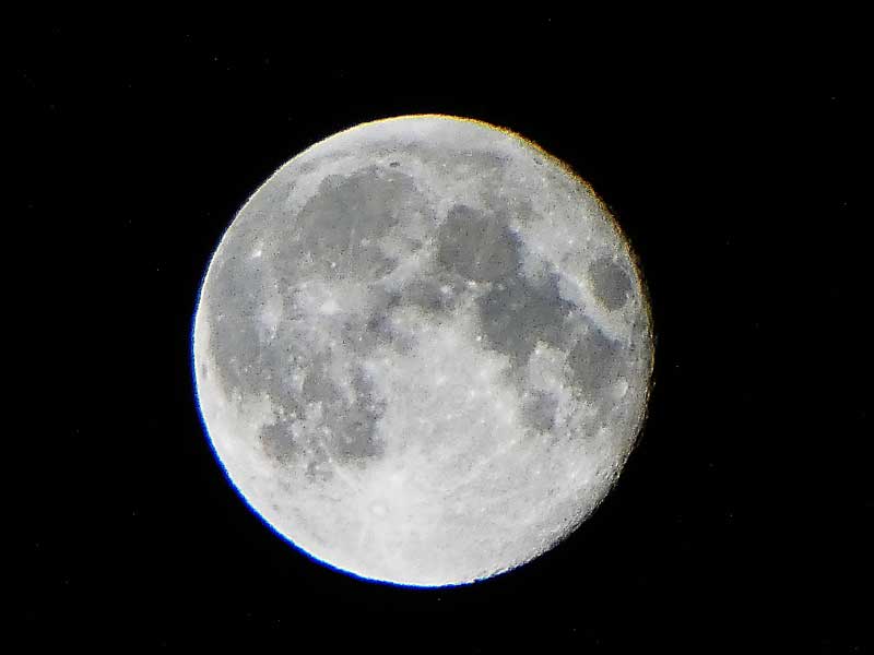 Den Mond habe ich heute um 4 Uhr aus dem Fenster im Badezimmer fotografiert. Dann habe ich Micaëla aufgeweckt und sie hat ihn auch mit ihrer Mondkamera fotografiert.