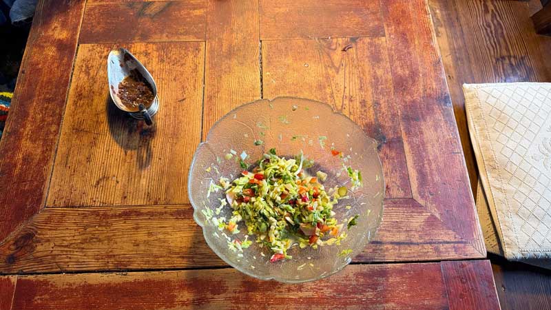 Für unser Mittagessen hat Micaëla den Salatrest optimiert. Er schmeckt mir besser als jeder andere bisherige Salat.