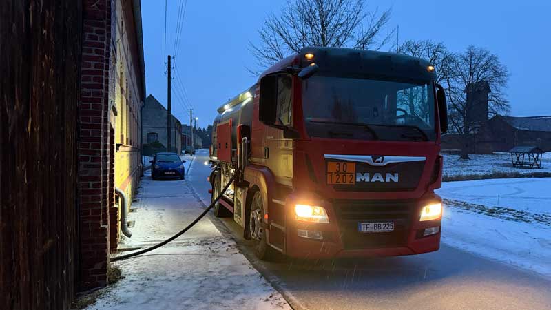 Um 7.10 Uhr ist er da. Er pumpt 4.200 Liter in die Plastikfässer in meinem Keller…