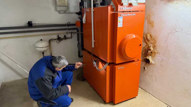 …um 8.15 Uhr ist der Monteur der Firma HATEC da, baut die Verkleidung des Kessels wieder zusammen und startet den Heizofen. Zuerst liefert er warmes Wasser. Erst im Laufe des Tages werden die einzelnen Heizkörper langsam warm. Andreas Vogel von alleskino.de, der um zehn Uhr mich besuchen wollte, sagt seinen Besuch wegen des schlechten Wetters um 7.33 Uhr per email ab.