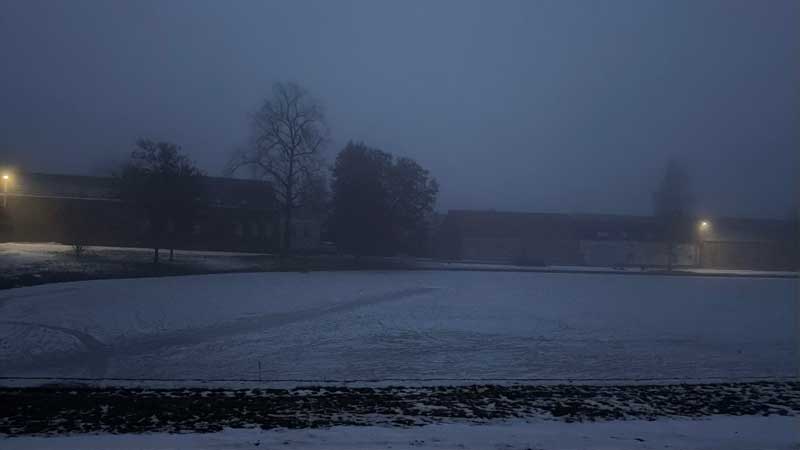 Der Dorfteich um 7.02 Uhr. Nebel.