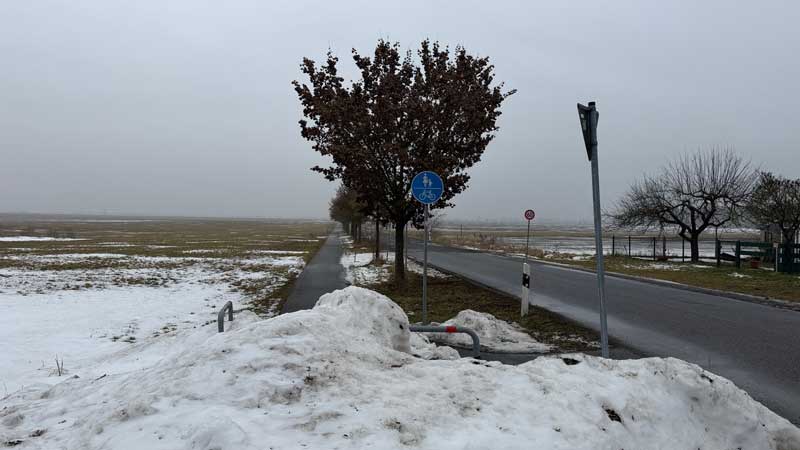 Beim Autofahren habe ich gesehen, dass der Radweg zum Kartoffellager eisfrei ist. Bei 4 Grad plus steige ich zum ersten Mal in diesem Monat auf mein Rad.